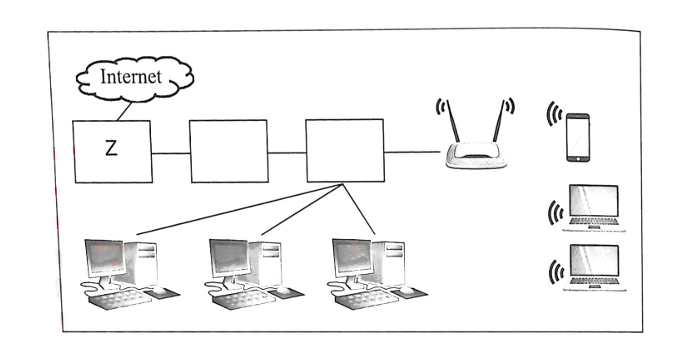 Phương án nào cho bên dưới hình sau chỉ ra đúng tên của thiết bị mạng được kí hiệu " Z " ở trong hình?