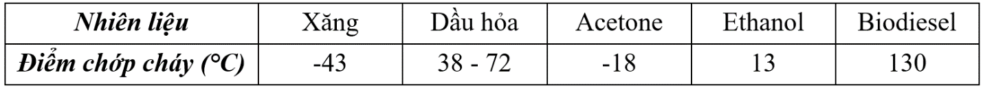 Dựa vào điểm chớp cháy của các loại nhiên liệu.