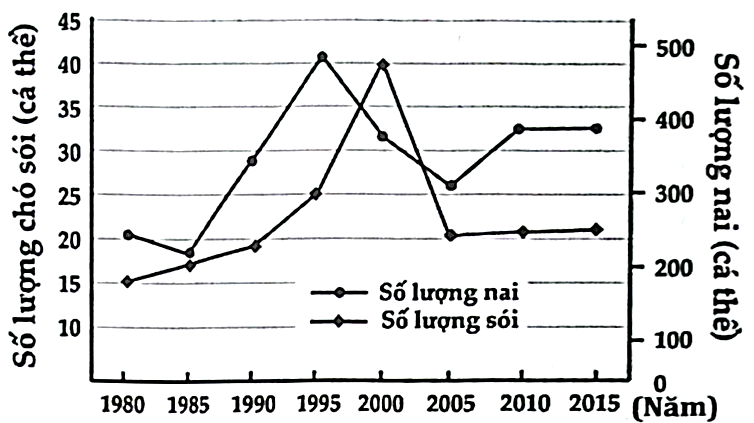 III. Giai đoạn 2010 đến 2015 số lượng cá thể quần thể nai gấp khoảng 1,5 quần thể chó sói.