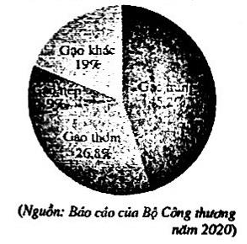 Năm 2020, Việt Nam xuất khẩu (ước đạt) 6,15 triệu tấn gạo, thu được 3,07 tỉ đô la Mỹ. Biểu đồ hình quạt tròn ở Hình bên biểu diễn khối lượng xuất khẩu của mỗi loại gạo trong số gạo xuất khẩu (tính theo tỉ số phần trăm). Khối lượng xuất khẩu gạo thơm chiếm bao nhiêu phần trăm?