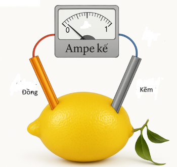 Khi nối hai mảnh kẽm (Zn) và đồng (Cu) trong quả chanh (hoạt động như một dung dịch điện ly), sẽ phát sinh một dòng điện giữa hai điện cực.
