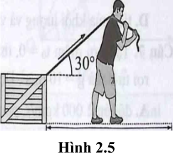 Để di chuyển một thùng hàng, một người dùng sợi dây thừng buộc vào thùng hàng và kéo nó trượt trên sàn (Hình 2.5). Biết lực kéo của người đó có độ lớn 200 N và sợi dây hợp với phương ngang một góc 30°. Khi thùng hàng dịch chuyển được 5 m trên sàn thì lực kéo của người đã sinh công