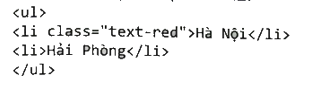 Đoạn mã HTML trên định nghĩa một danh sách không thứ tự (ul) với hai mục (li), mục đầu tiên có class là "text-red".