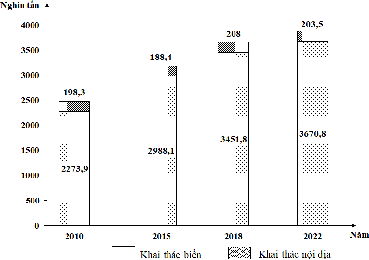 - Phương án A. Sản lượng khai thác biển năm 2022 gấp đôi sản lượng khai thác biển năm 2010.