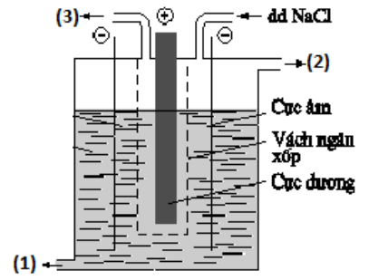 Theo sơ đồ trong hình vẽ và nguyên lý trên, dung dịch NaOH sẽ được hình thành gần cực âm tức là tại vị trí (1).