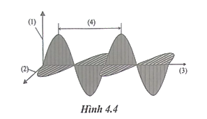 Hình 4.4 minh hoạ một sóng điện từ khi truyền trong không gian. Ghi chú các yếu tố theo thứ tự (1), (2), (3), (4) nào dưới đây đúng?