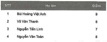 Thầy giáo yêu cầu một nhóm học sinh làm một trang web hiển thị danh sách điểm để học sinh trong lớp có thể xem điểm trực tuyến như sau:
