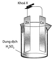 (1) Đúng. Khi khóa X mở, thanh Zn tiếp xúc với dung dịch H2SO4 loãng. Phản ứng hóa học sau xảy ra: