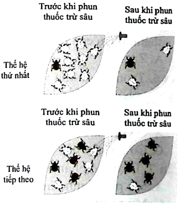 Một quần thể côn trùng được phun bằng một loại thuốc trừ sâu mới. Trong lần phun đầu tiên, đa số các con côn trùng đều chết nhưng vẫn còn một số cá thể sống sót. Ở thế hệ tiếp theo, nhiều cá thể côn trùng không bị ảnh hưởng đến sống khi phun thuốc trừ sâu. Nhận định nào sau đây đúng khi giải thích hiện tượng trên?