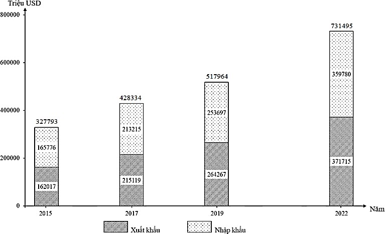 TRỊ GIÁ XUẤT, NHẬP KHẨU HÀNG HOÁ CỦA NƯỚC TA GIAI ĐOẠN 2015 - 2022