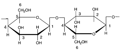 Cellulose là polymer thiên nhiên, có công thức phân tử $\left( {C_{6}H_{10}O_{5}} \right)_{n}$, được cấu tạo như sau:
