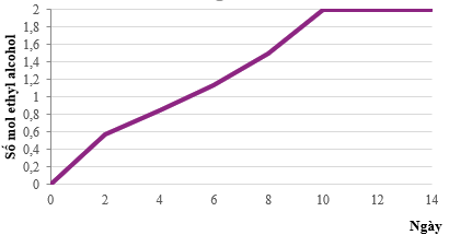 2. Đúng. Theo đồ thị, ta thấy ở ngày 12, số mol ethanol tạo thành là 2 mol.