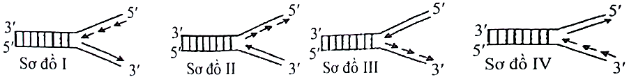 Sơ đồ nào sau đây mô tả đúng về giai đoạn kéo dài mạch pôlynucleotide mới trên l chạc chữ Y trong quá trình nhân đôi DNA ở sinh vật nhân sơ?