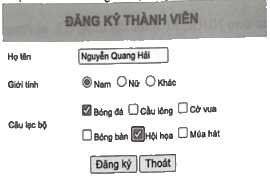 Ý kiến 1: Sử dụng thẻ <input> với giá trị thuộc tính type="radio" cho việc lựa chọn giới tính, và type="checkbox" cho lựa chọn câu lạc bộ là hoàn toàn đúng.