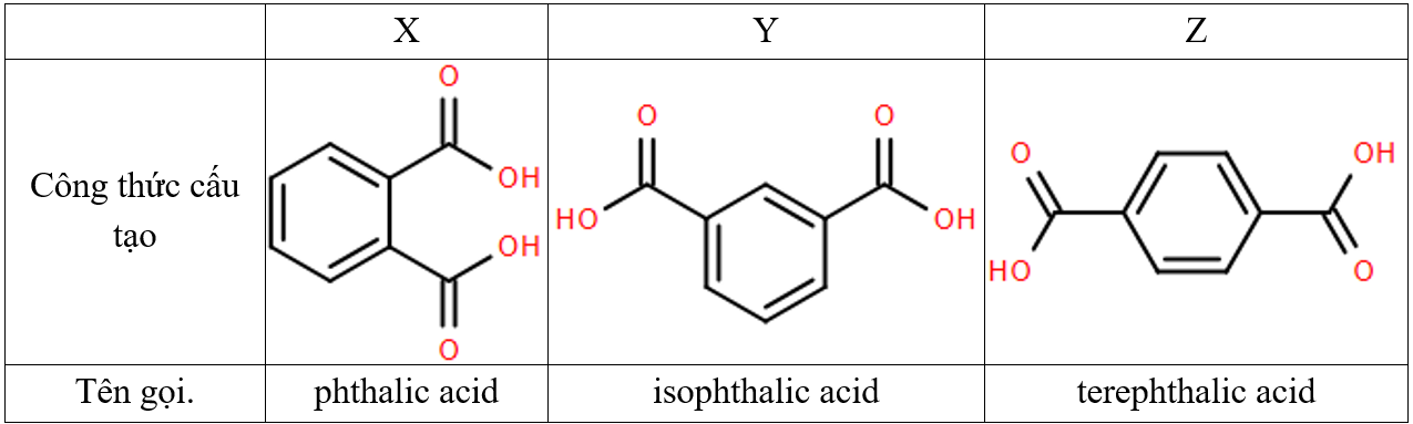 Ba acid X, Y, Z với thông tin ở bảng sau :