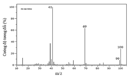 (1) Đúng, peak ion phân tử có m/z = 100 nên ${{M}_{X}}=100$.