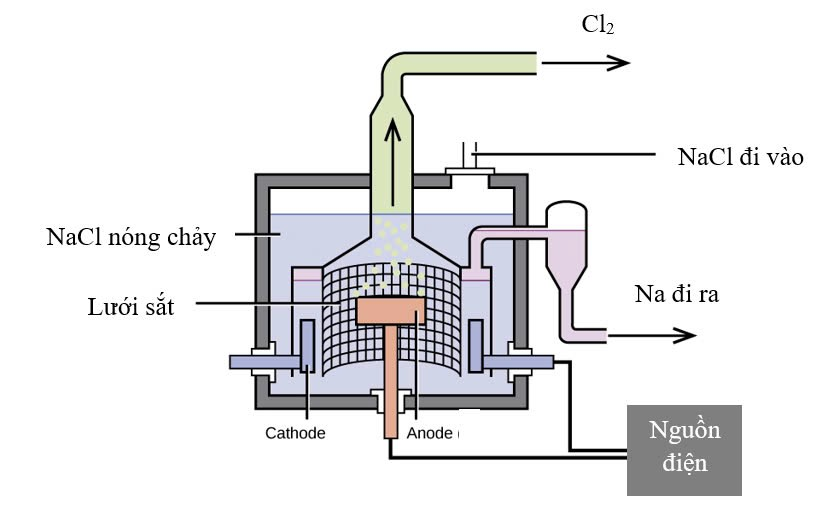 (3) Lưới sắt giúp ngăn cho Na (ở trạng thái nóng chảy) không phản ứng lại với $Cl_{2}$.