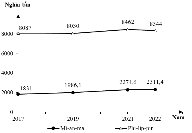 Sản lượng ngô của Mi-an-ma và Phi-lip-pin, giai đoạn 2017 - 2022