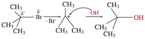 Dựa vào cơ chế của phản ứng thủy phân tert-butyl bromide trong môi trường kiềm.