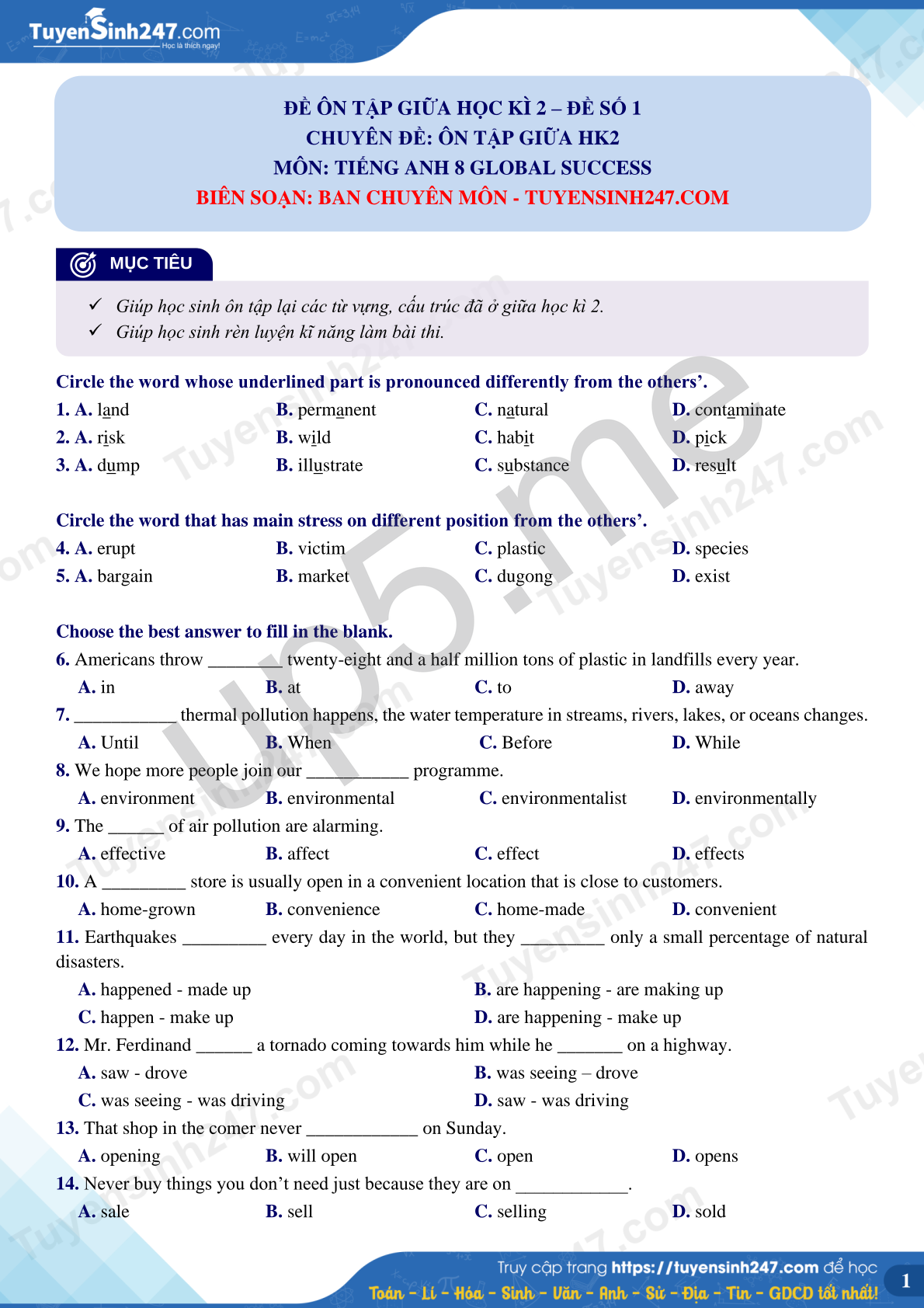 BIÊN SOẠN: BAN CHUYÊN MÔN - TUYENSINH247.COM