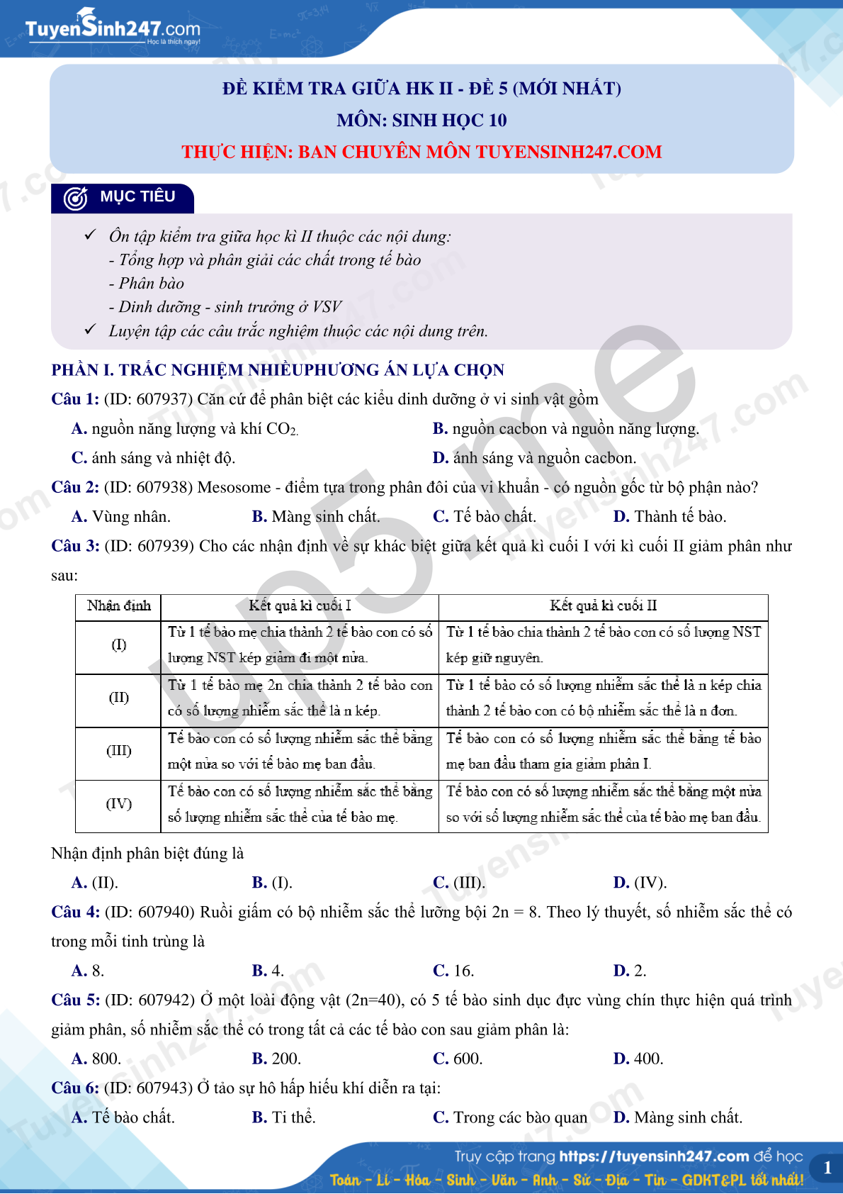 MÔN: SINH HỌC 10