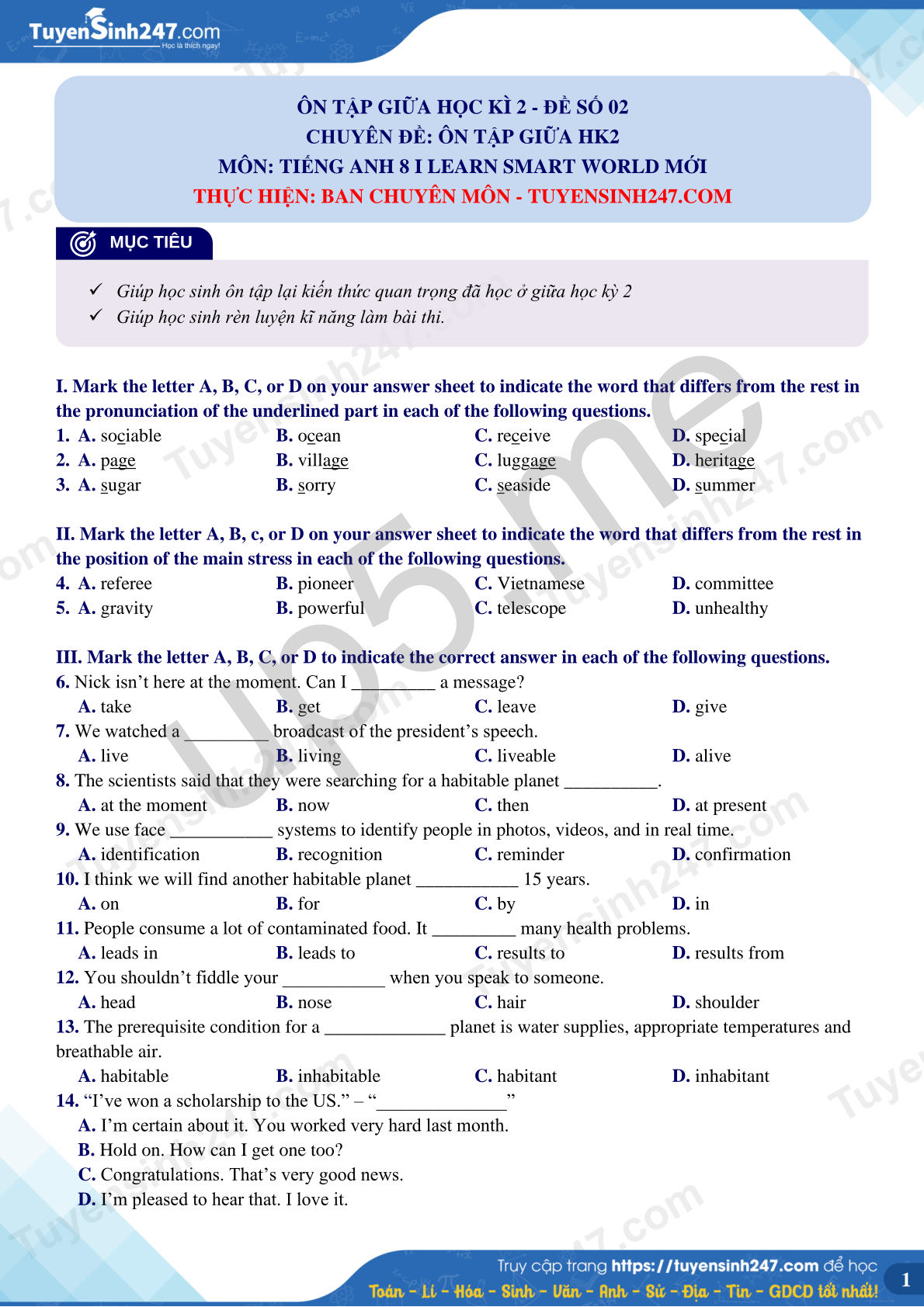 ÔN TẬP GIỮA HỌC KÌ 2 - ĐỀ SỐ 02