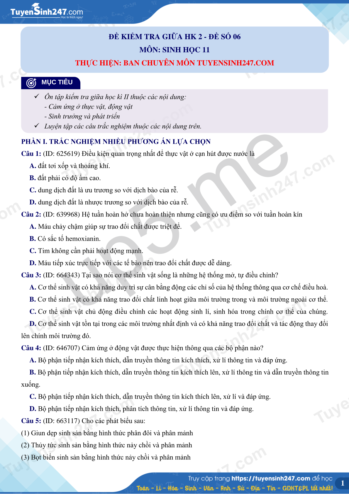 ĐỀ KIỂM TRA GIỮA HK 2 - ĐỀ SỐ 06