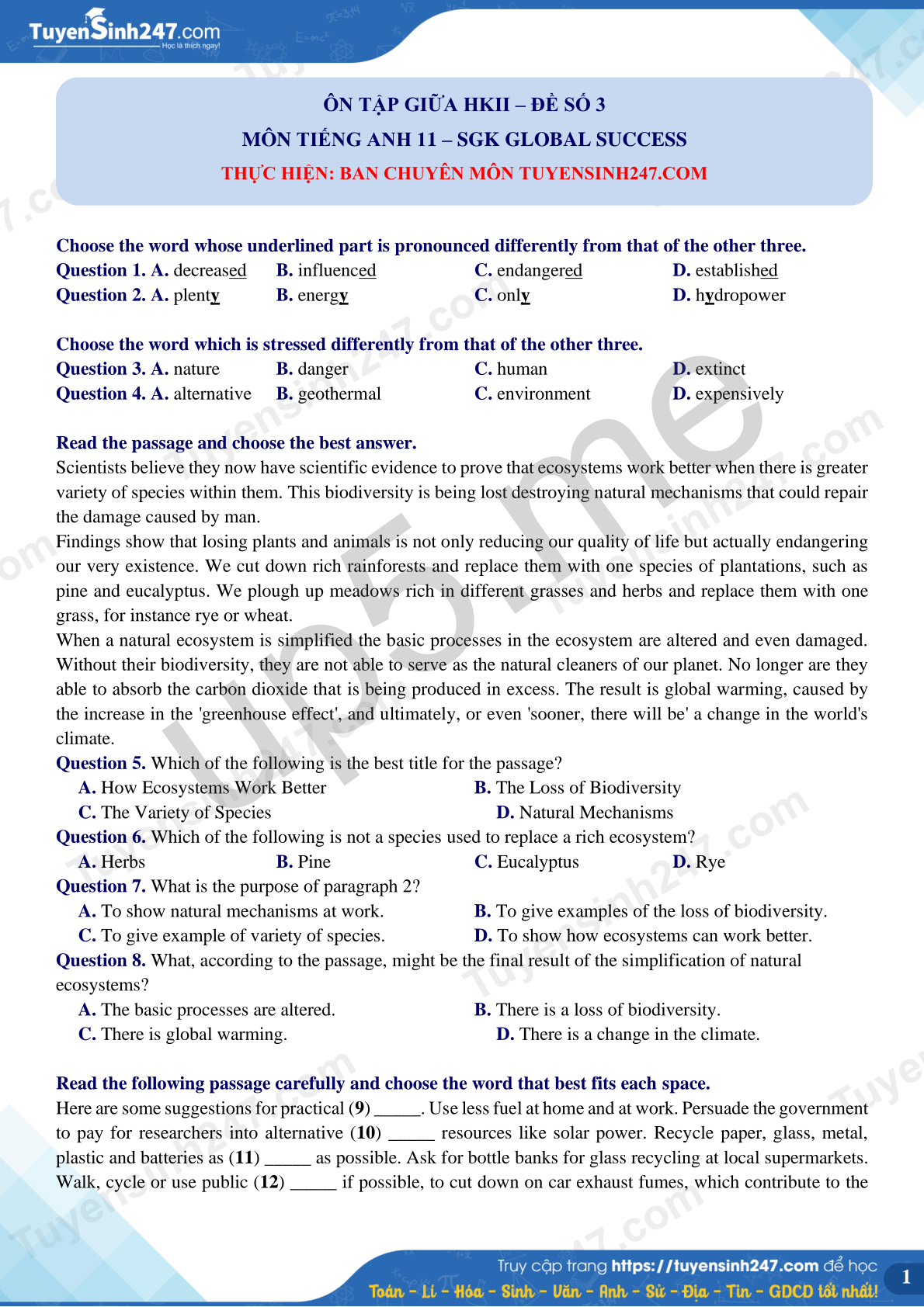 Question 2. A. plenty B. energy C. only D. hydropower