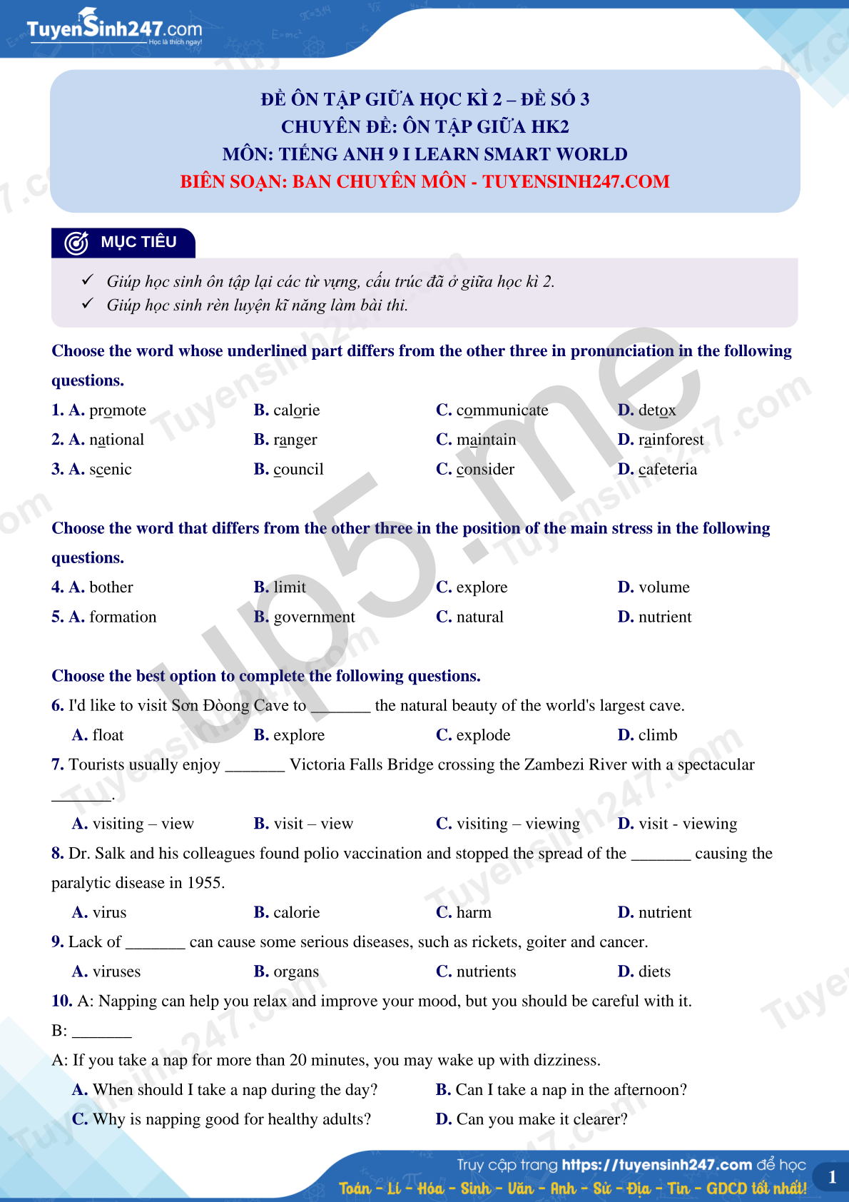 BIÊN SOẠN: BAN CHUYÊN MÔN - TUYENSINH247.COM