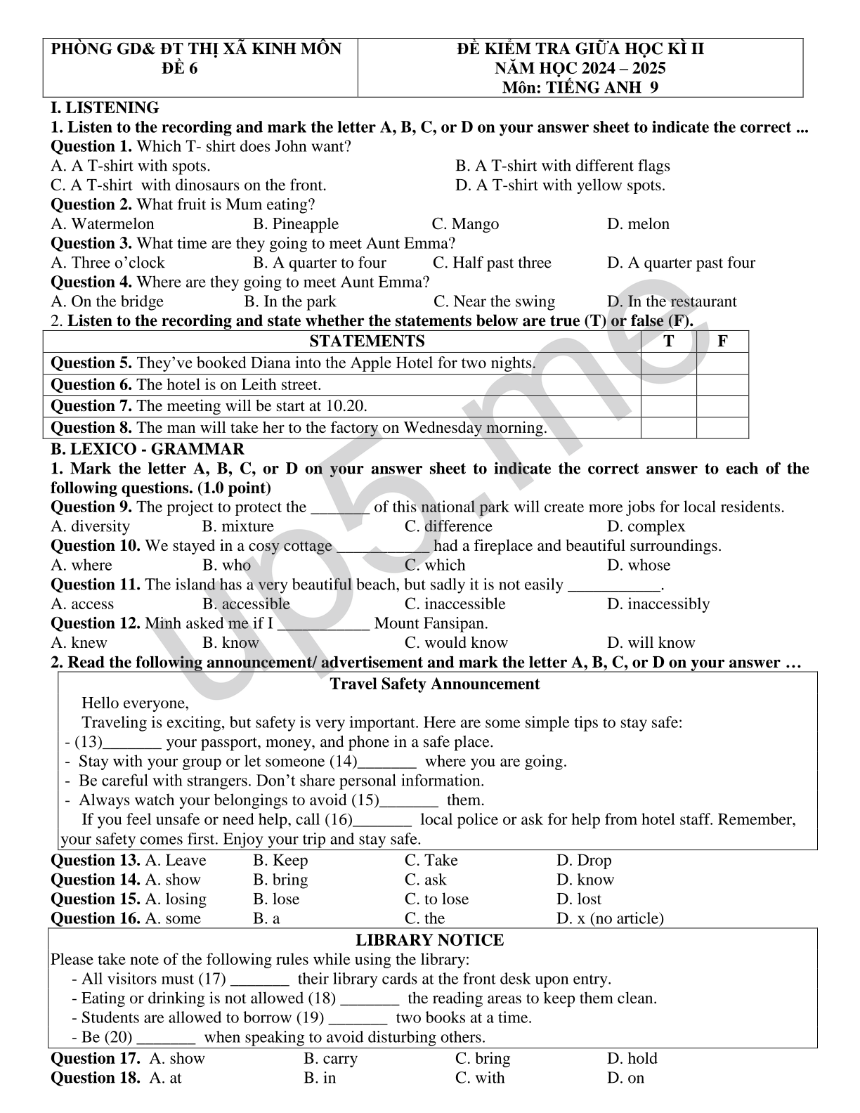 Môn: TIẾNG ANH 9