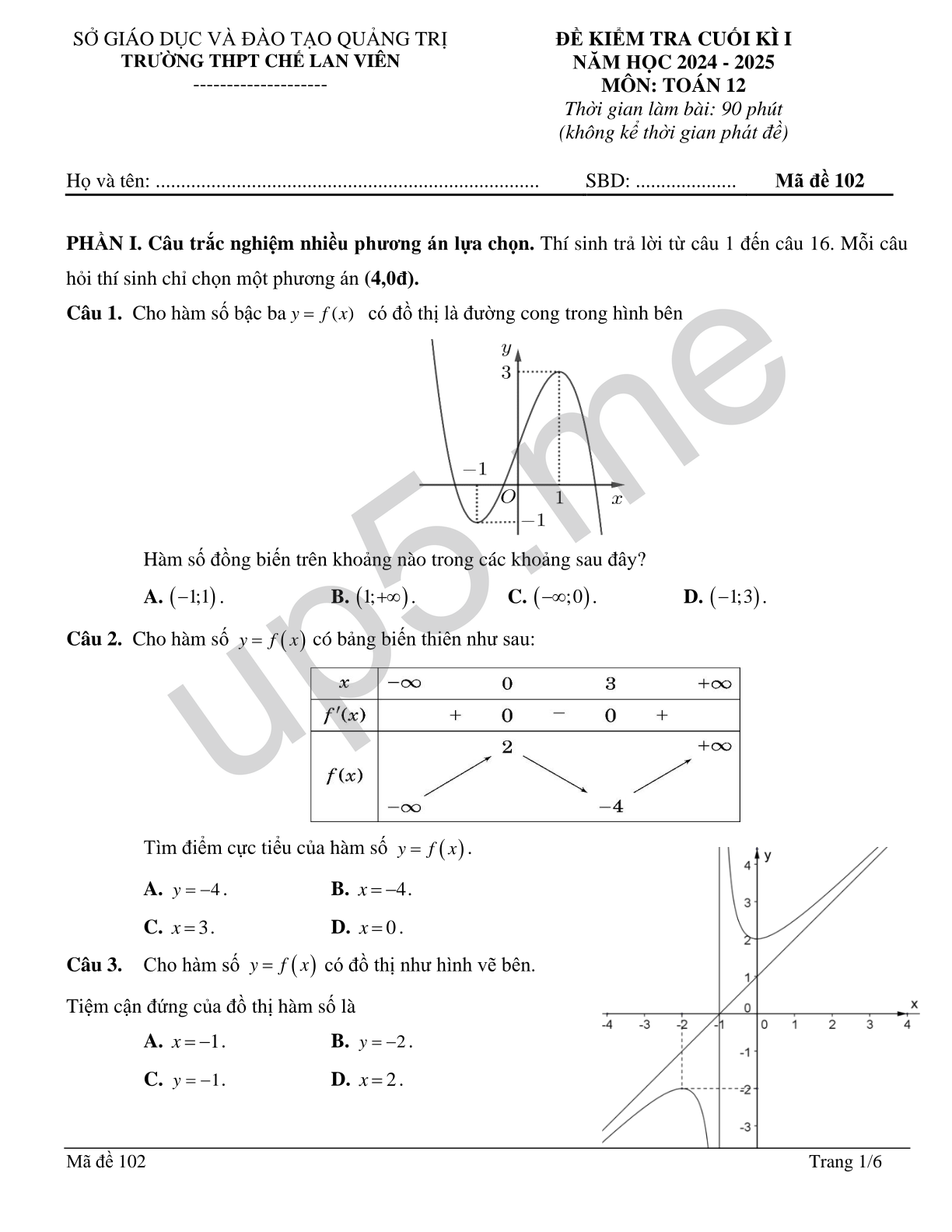 PHẦN I. Câu trắc nghiệm nhiều phương án lựa chọn. Thí sinh trả lời từ câu 1 đến câu 16. Mỗi câu hỏi thí sinh chỉ chọn một phương án (4,0đ).