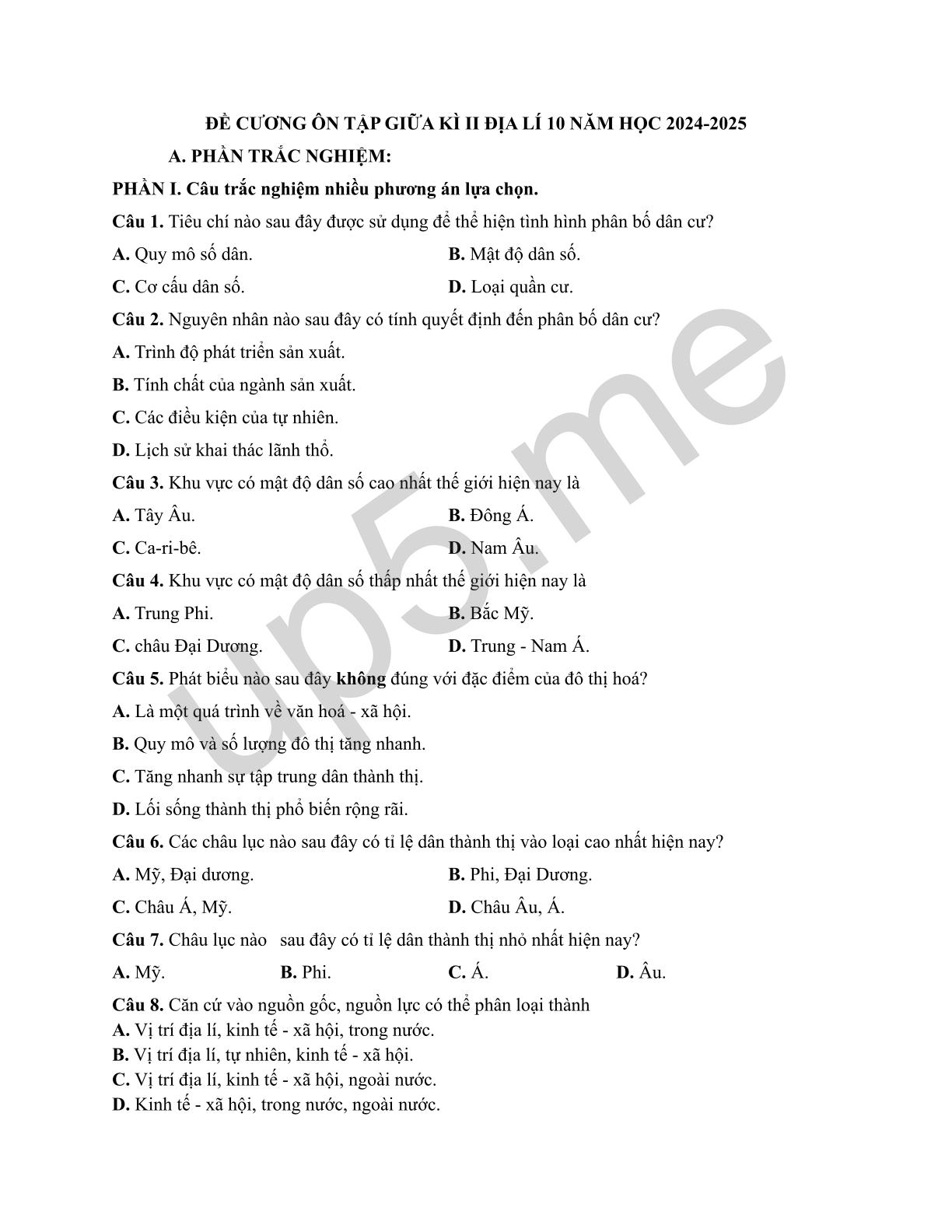 ĐỀ CƯƠNG ÔN TẬP GIỮA KÌ II ĐỊA LÍ 10 NĂM HỌC 2024-2025