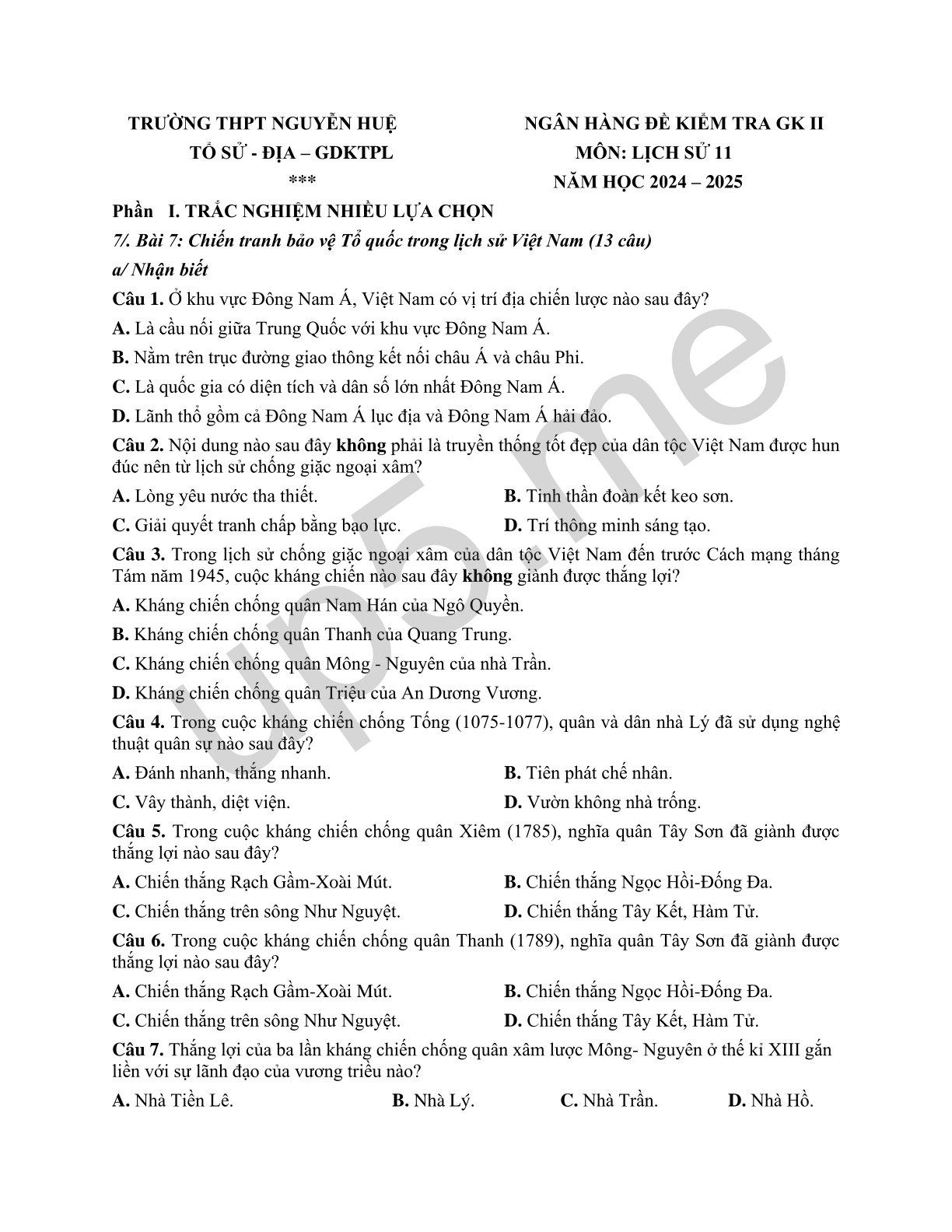 Bài 7: Chiến tranh bảo vệ Tổ quốc trong lịch sử Việt Nam (13 câu)