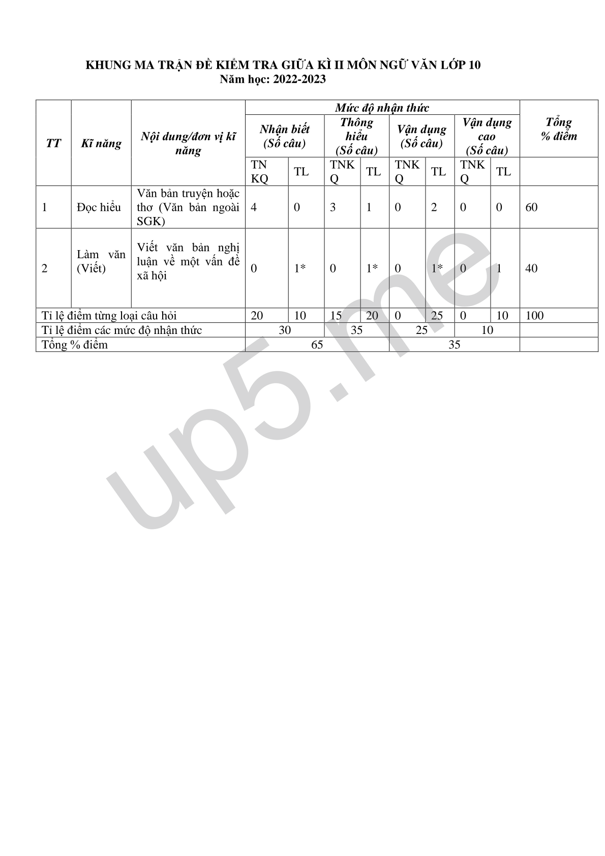 Nội dung kiểm tra gồm 10 câu hỏi, kết hợp trắc nghiệm khách quan và tự luận.