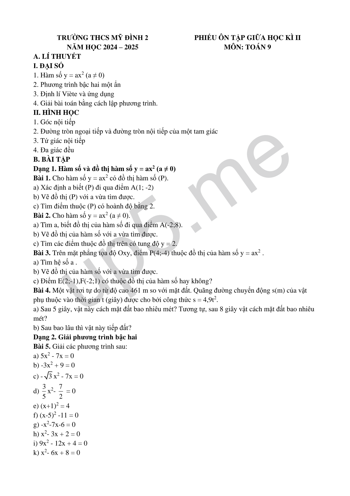 TRƯỜNG THCS MỸ ĐÌNH 2 NĂM HỌC 2024 – 2025 |