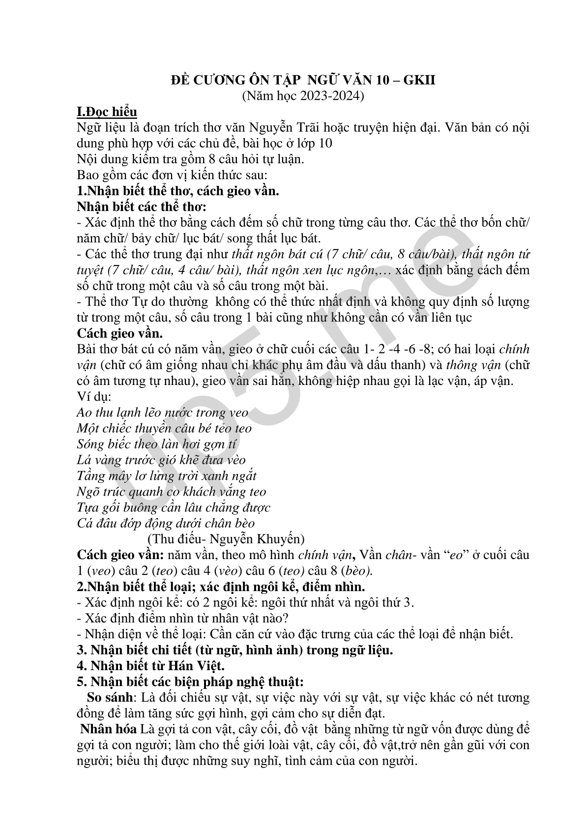 ĐỀ CƯƠNG ÔN TẬP NGỮ VĂN 10 – GKII