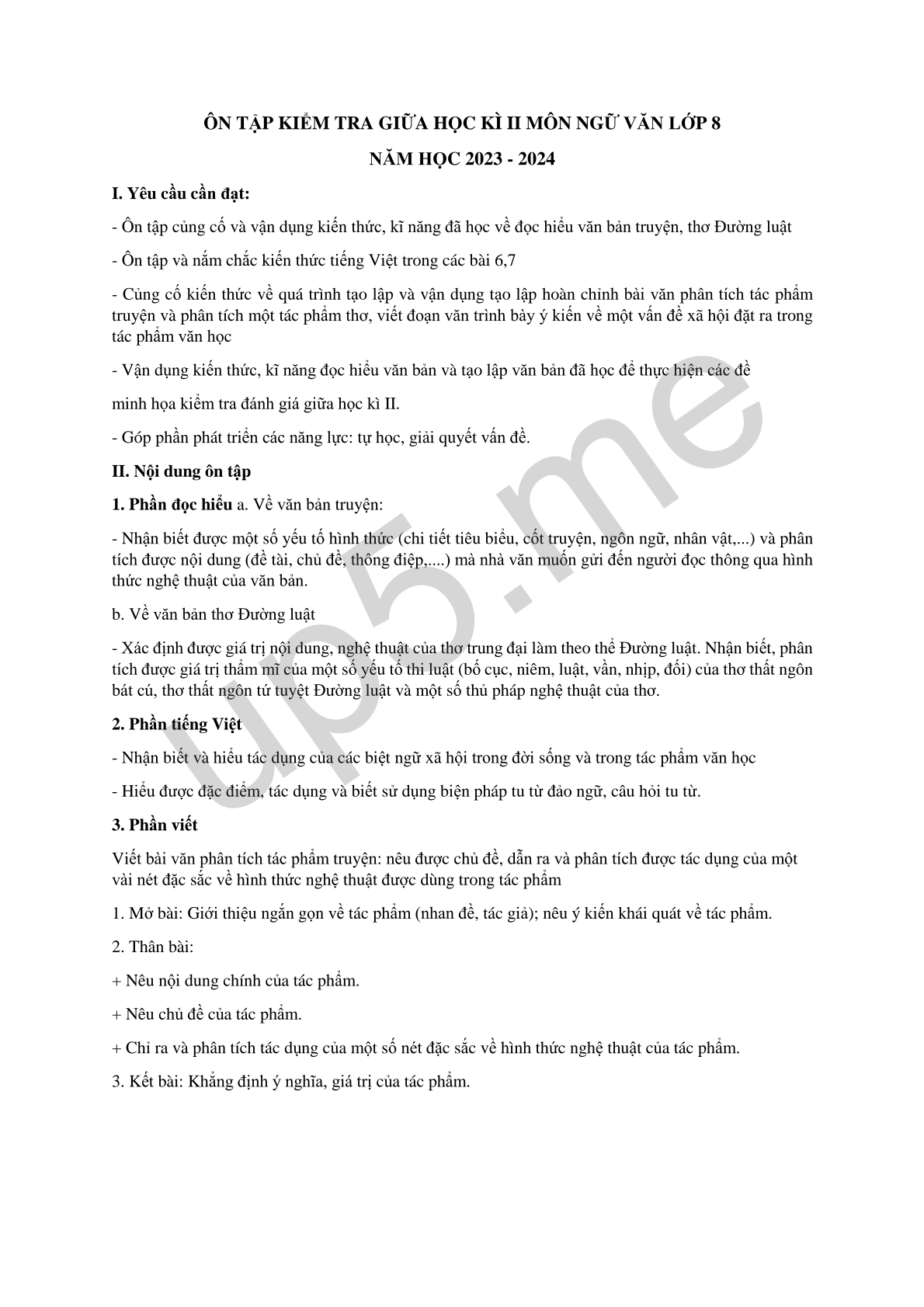 ÔN TẬP KIỂM TRA GIỮA HỌC KÌ II MÔN NGỮ VĂN LỚP 8
