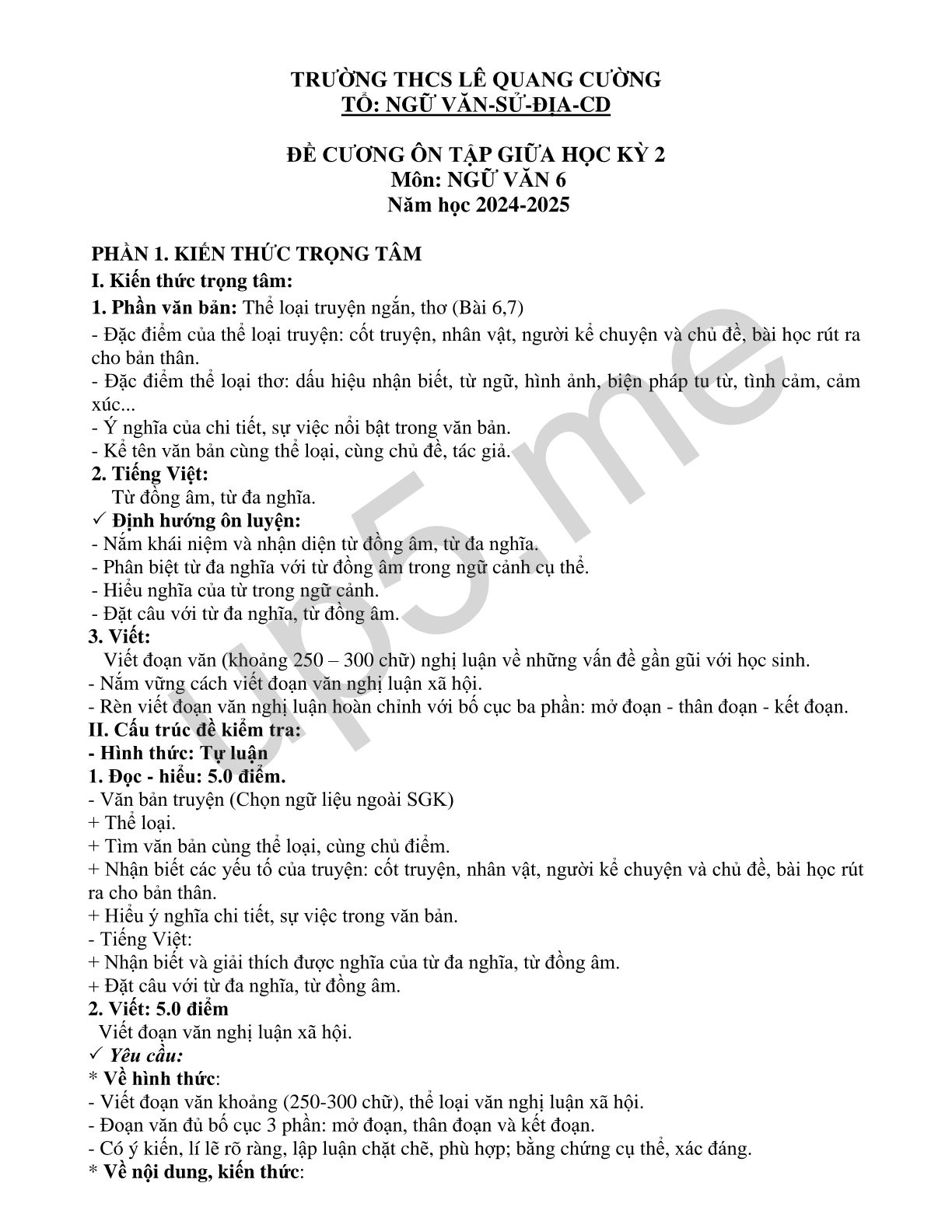 ĐỀ CƯƠNG ÔN TẬP GIỮA HỌC KỲ 2