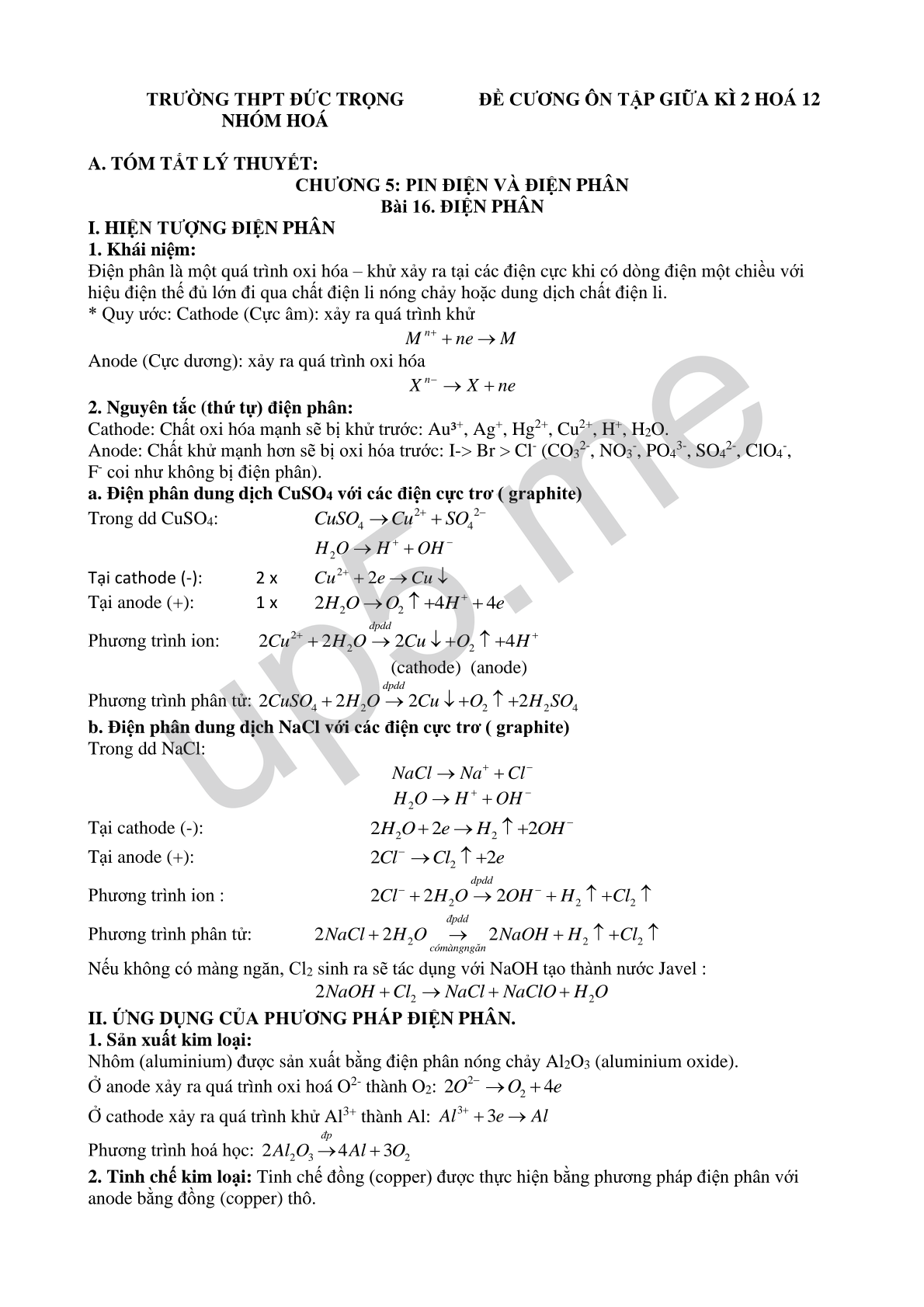 ĐỀ CƯƠNG ÔN TẬP GIỮA KÌ 2 HOÁ 12