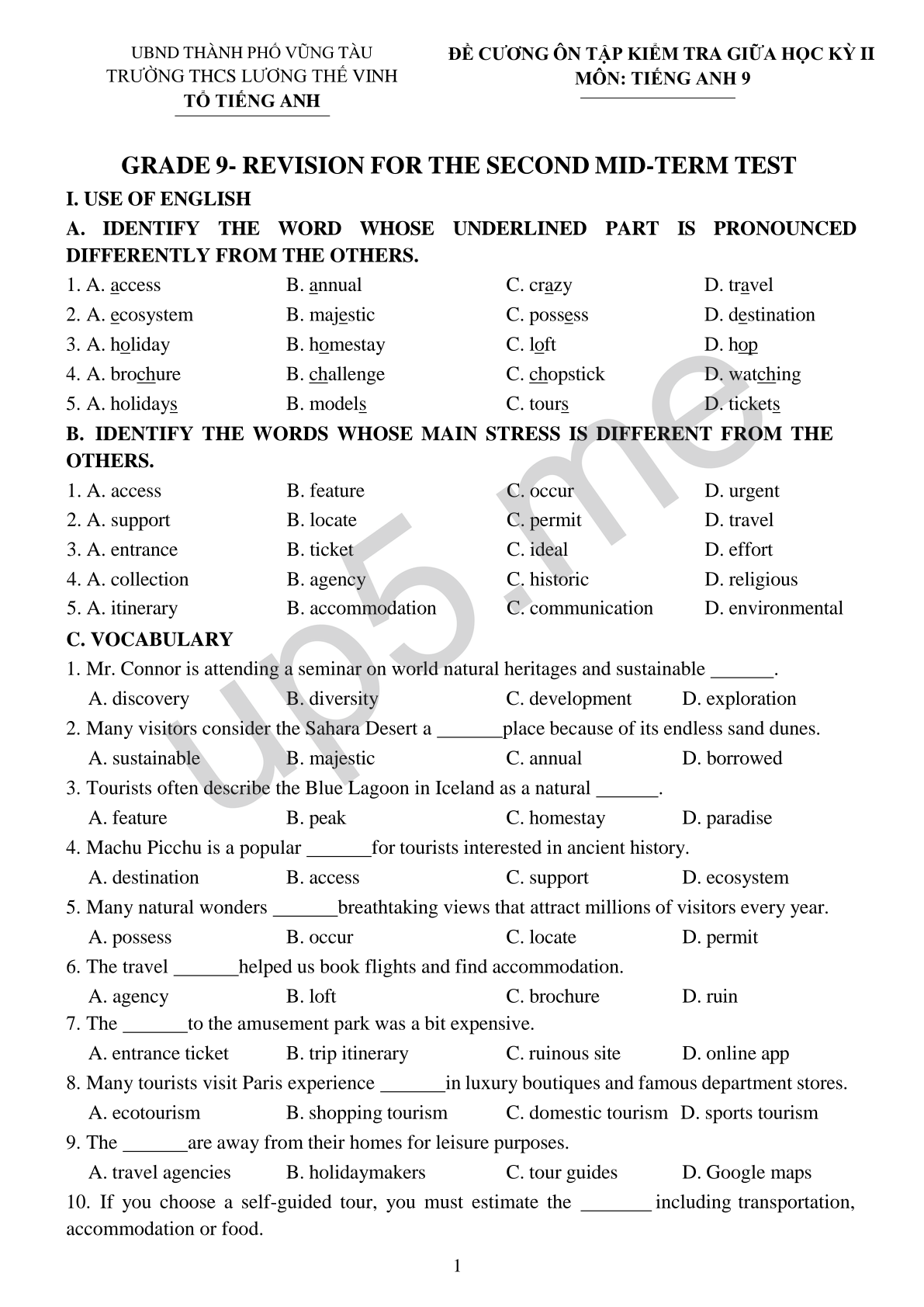 ĐỀ CƯƠNG ÔN TẬP KIỂM TRA GIỮA HỌC KỲ II MÔN: TIẾNG ANH 9