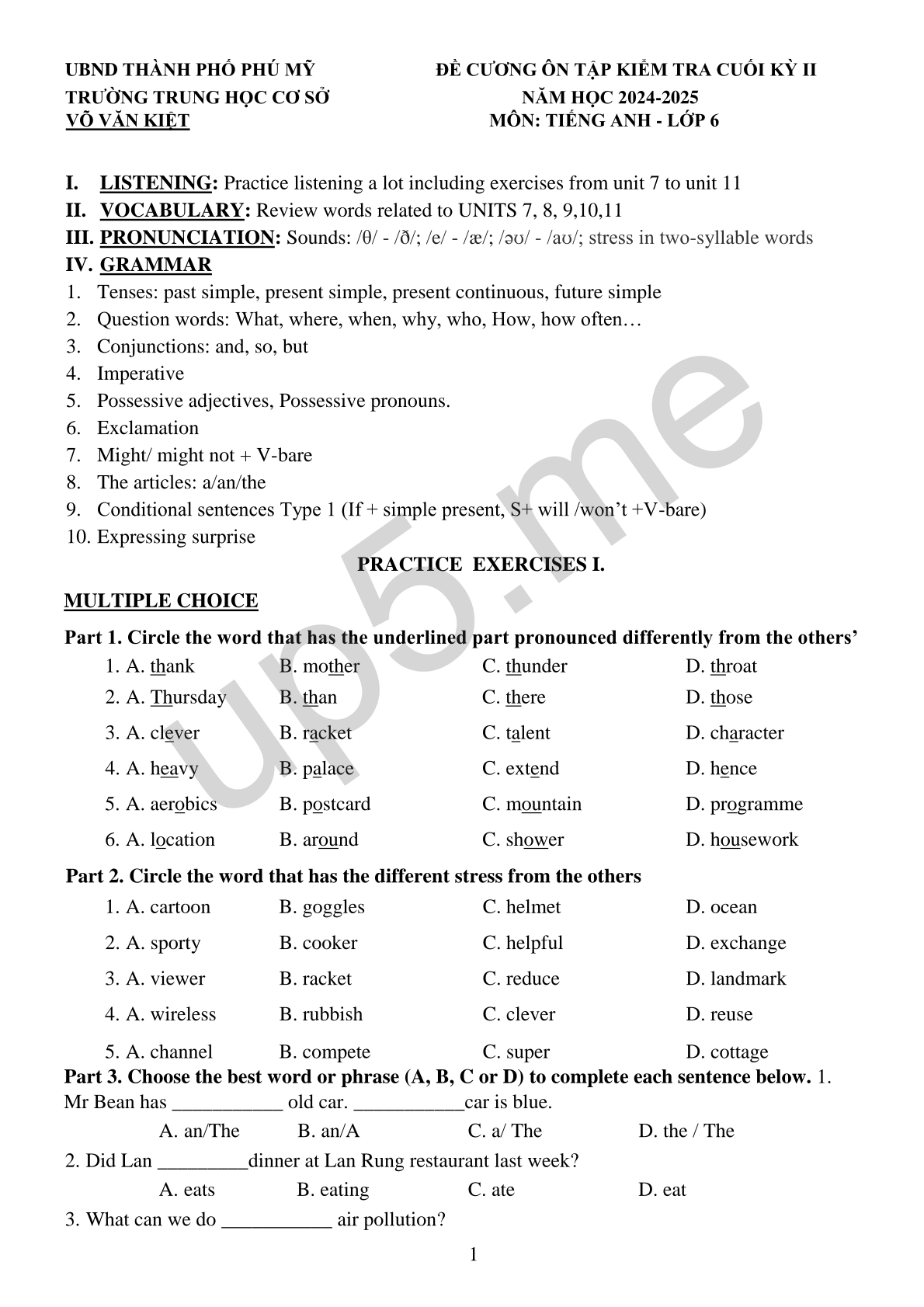 I. LISTENING: Practice listening a lot including exercises from unit 7 to unit 11