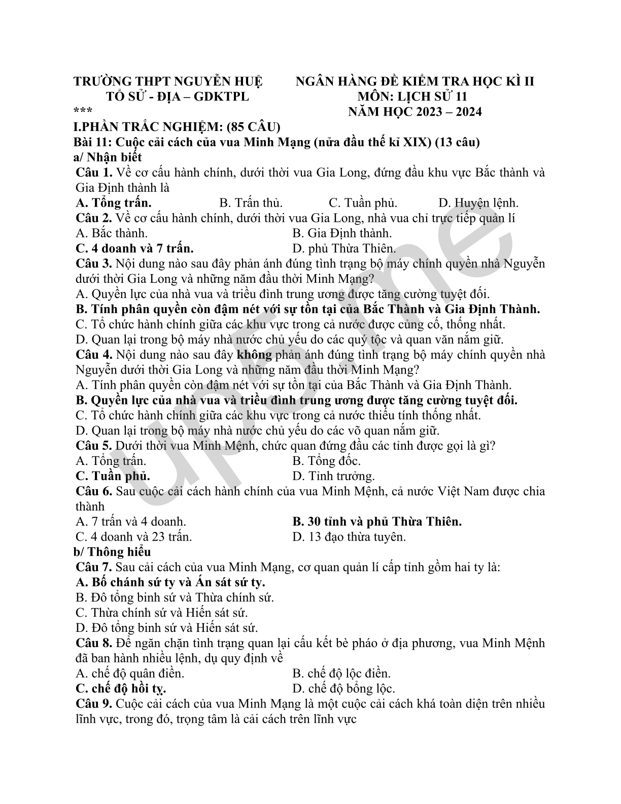 Bài 11: Cuộc cải cách của vua Minh Mạng (nửa đầu thế kỉ XIX) (13 câu)