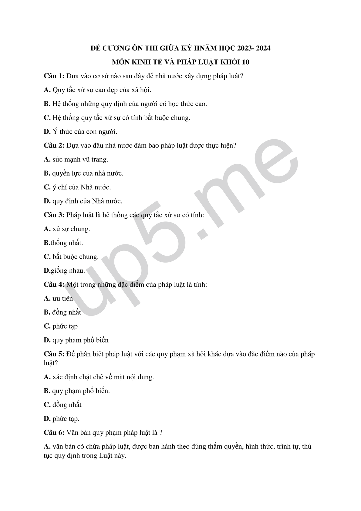 MÔN KINH TẾ VÀ PHÁP LUẬT KHỐI 10