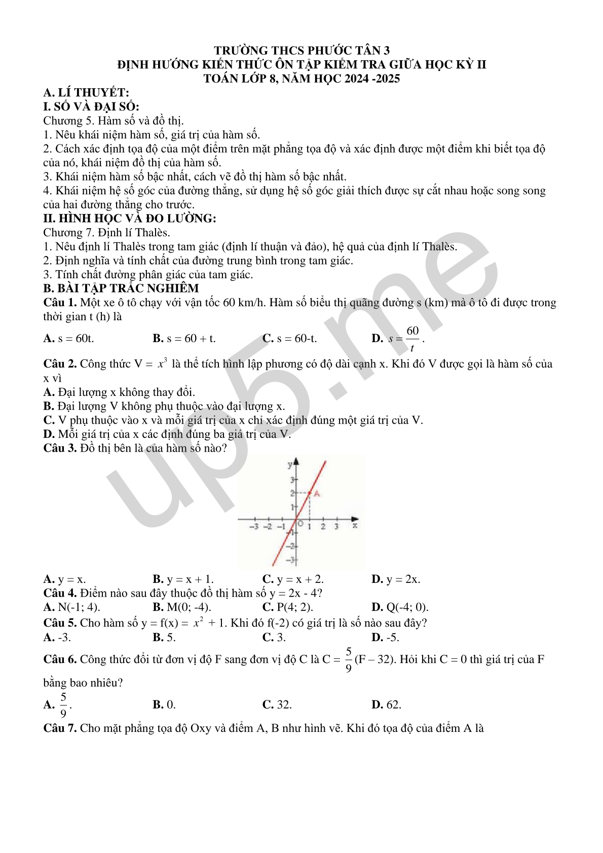 TOÁN LỚP 8, NĂM HỌC 2024 -2025