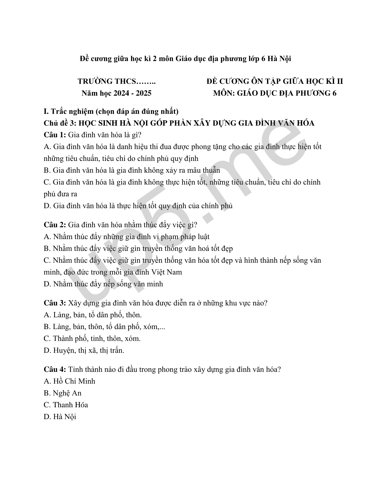 ĐỀ CƯƠNG ÔN TẬP GIỮA HỌC KÌ II MÔN: GIÁO DỤC ĐỊA PHƯƠNG 6 |