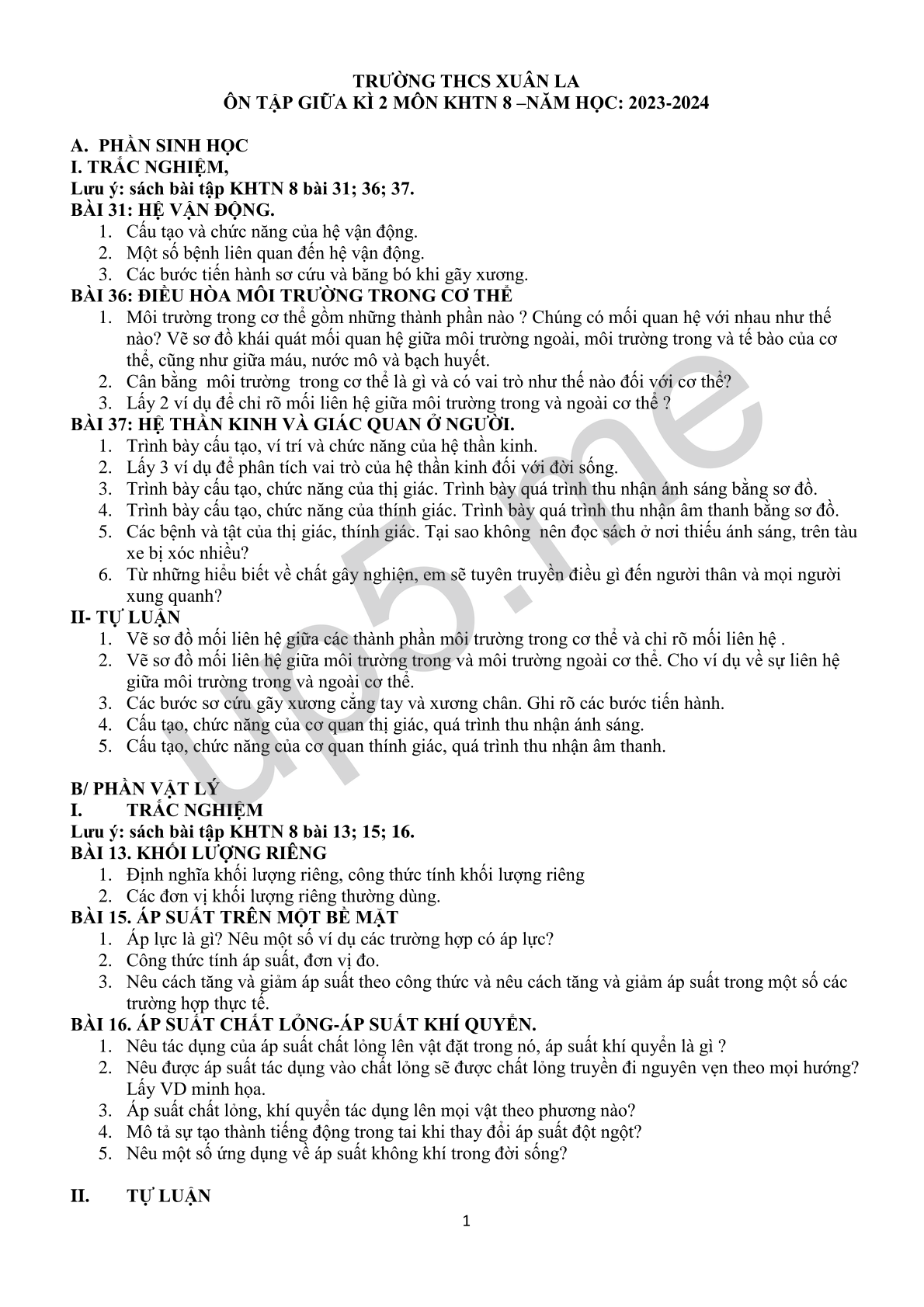 ÔN TẬP GIỮA KÌ 2 MÔN KHTN 8 –NĂM HỌC: 2023-2024