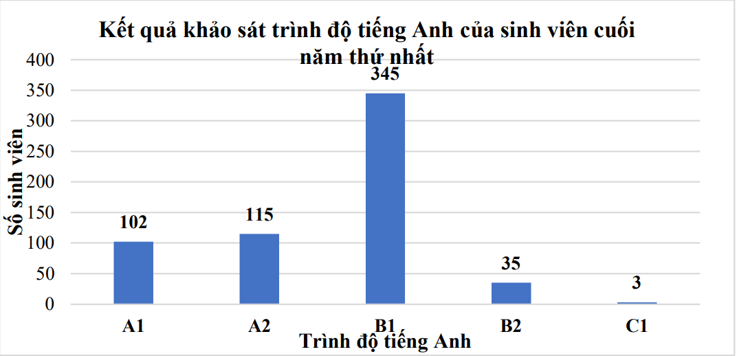 Câu 1. Biểu đồ sau cho biết kết quả khảo sát trình độ tiếng Anh của sinh viên cuối năm thứ nhất ở một trường đại học: