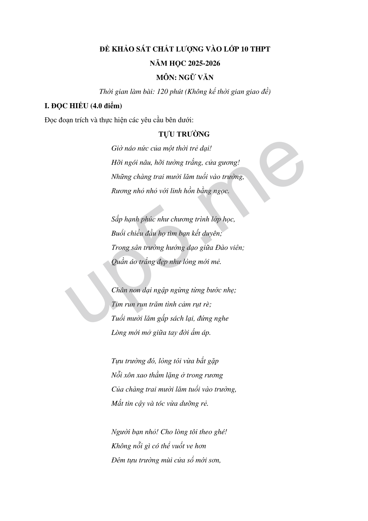 ĐỀ KHẢO SÁT CHẤT LƯỢNG VÀO LỚP 10 THPT