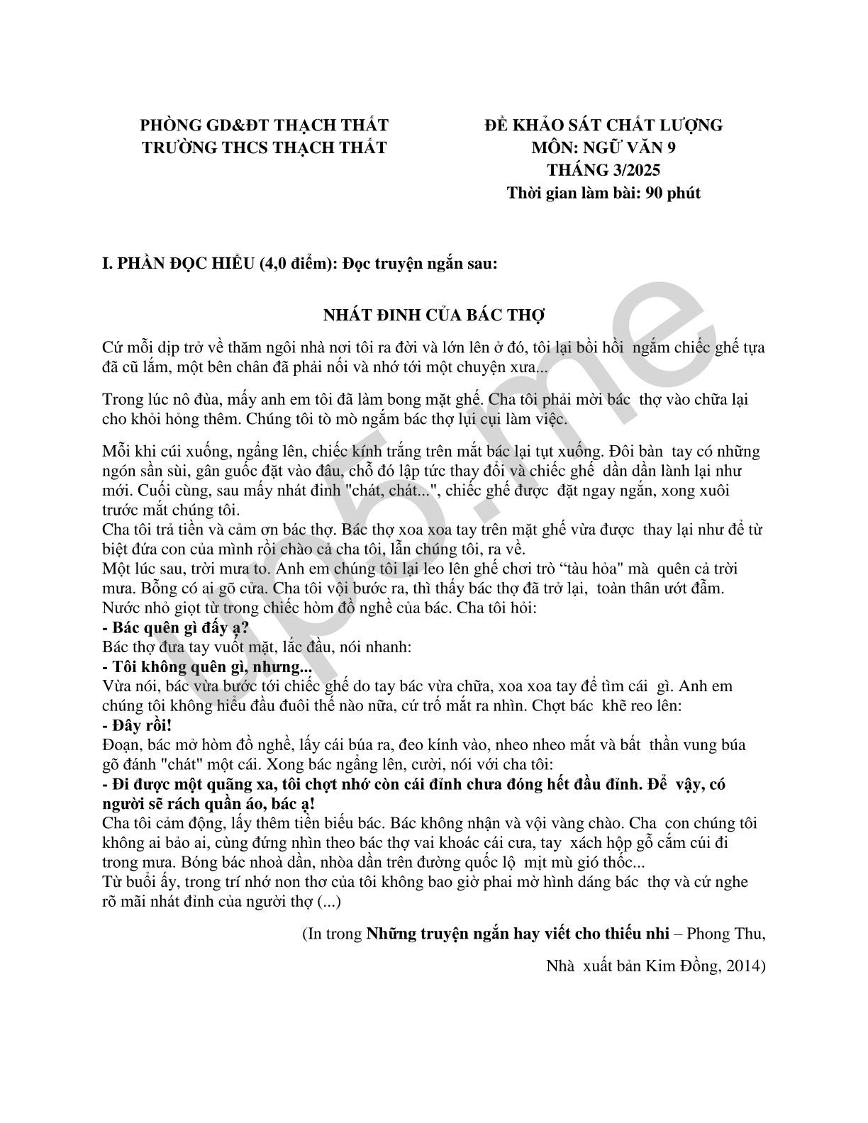 ĐỀ KHẢO SÁT CHẤT LƯỢNG |