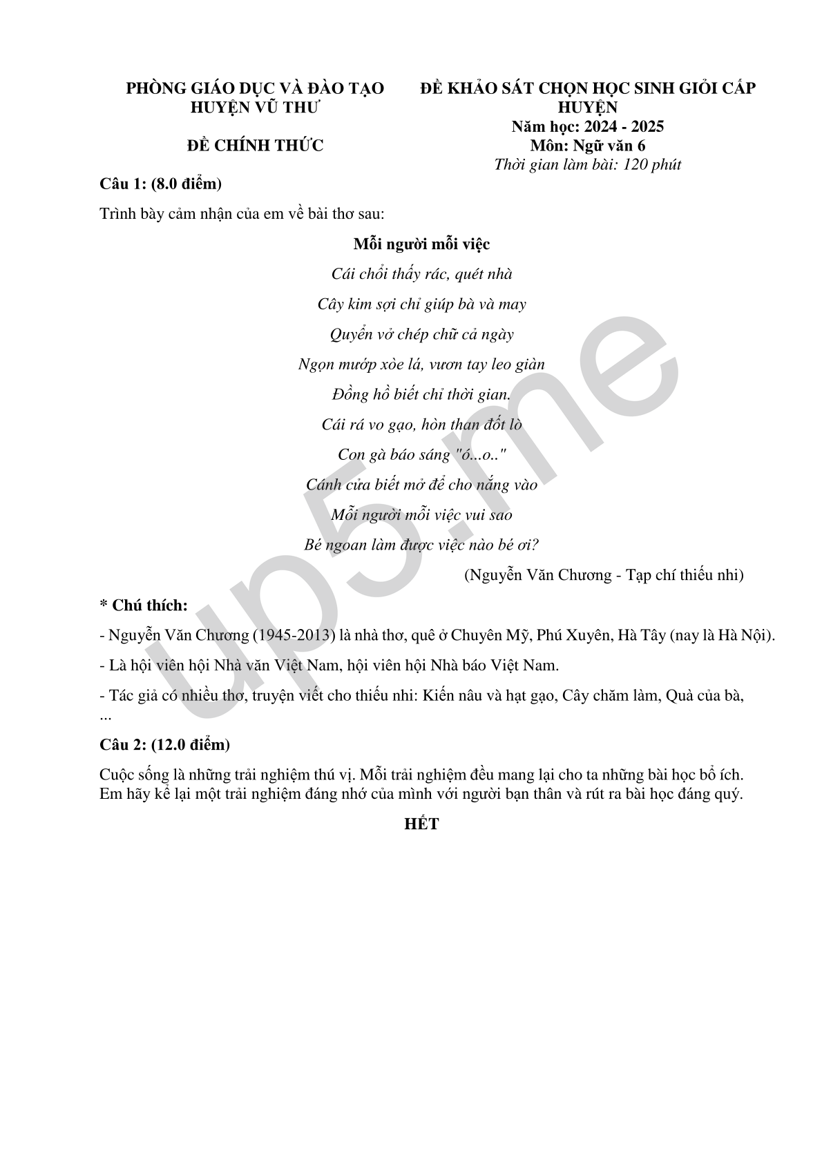 PHÒNG GIÁO DỤC VÀ ĐÀO TẠOHUYỆN VŨ THƯĐỀ CHÍNH THỨC |